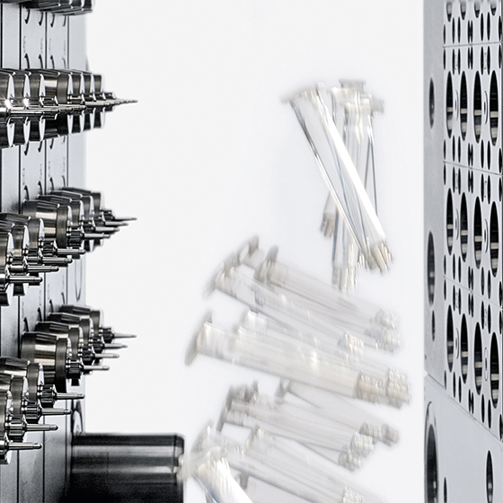 Einzelzentrierung Einzeln zentrierte Formeinsätze garantieren höchste Konzentrizität der Produkte sowie hohe Standzeiten der Formteile.